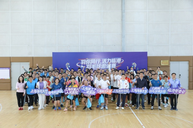 下午时分,各参赛队伍有序入场,临港新片区管理委员会、我校、上海海事大学、上海海洋大学、上海电机学院、上海建桥学院、上海市第六人民医院、上海建工二建集团以及由东华大学、第二工业大学、上海健康医学院等高校教职工联队组成的白相相羽毛球俱乐部代表队,整齐列队于场馆中央,参赛运动员们在羽毛球赛场相遇,展现出临港新片区“政企校医”协同发展的独特魅力。