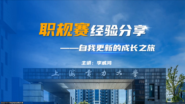 第二届全国大学生职业规划大赛成长赛道金奖得主李威鸿则聚焦“从‘0’到‘1’的实战经验”,详细讲解了比赛文稿与PPT的准备方法,介绍了实用技巧与能力提升路径。他特别指出,从院赛到国赛的每一步都是自我突破的历程,重点在于通过比赛构建职业规划的思维框架,而非仅仅追逐名次。