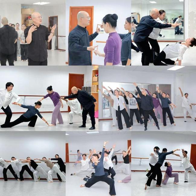 交流会后,余霄教授走进大学生活动中心舞蹈教室,为校大学生舞蹈团带来一堂生动的“舞蹈大师课——舞蹈即兴与编创”。他以启发式教学为核心,通过一系列即兴练习,引导学生打破身体惯性,唤醒情感表达与创作潜能。从动作质感、空间运用到情感传递与命题编创逻辑,余教授细致讲解、亲身示范,让同学们深刻体会到舞蹈不仅是身体的律动,更是真善美的传达。