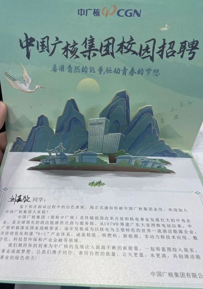 “我认同其‘发展清洁能源,造福人类社会’的使命,希望在核电仪控领域贡献力量”—— 清晰的规划与坚定的初心,让他在就业选择中不盲目、不跟风,最终收获心仪 offer。专业打底、科研赋能综合提效、实践定位、主动规划刘嘉欣的就业之路证明优质就业从不是偶然而是长期积累精准发力的必然结果未来他将在核电运维一线书写“上电人”的责任与担当。