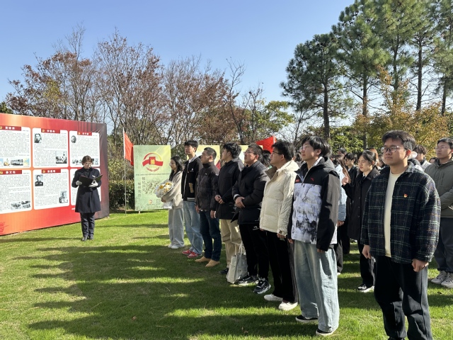 11月25日,为深刻感悟革命精神,进一步强化学生党员践行初心使命的责任担当,经济与管理学院工商管理系学生党支部以“追寻红色足迹,践行初心使命”为主题,于福寿园海港陵园开展了一场意义深刻的教育活动。师生党员及入党积极分子共40余人参与,校党建服务中心党建指导员欧阳元煌、学院组织员周颖共同参与。
