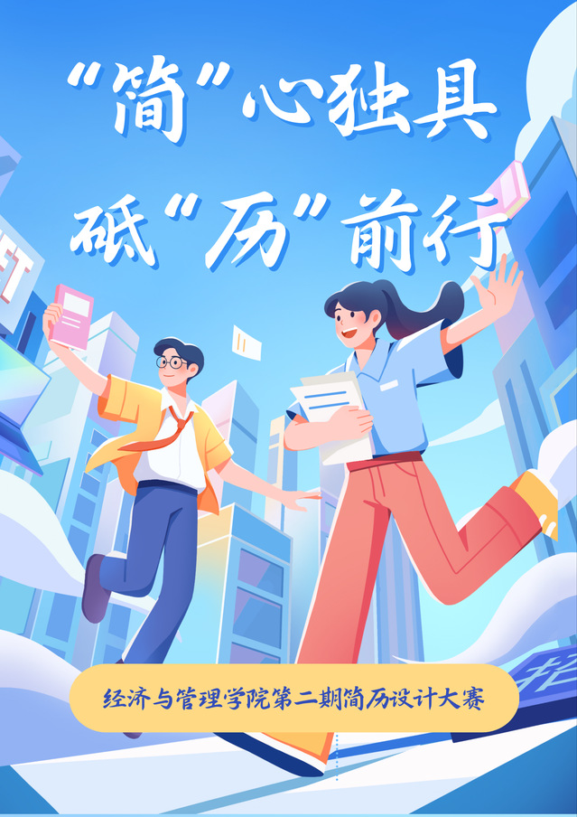 为切实提升学生求职竞争力,帮助其掌握优秀简历的撰写技巧,经管学院于11月面向二至四年级学生组织举办了第二期“简”心独具,砥“历”前行为主题的简历设计大赛。本次活动旨在引导学生立足用人单位视角,系统梳理个人教育背景、专业技能与实践经历,科学构建重点突出、与岗位契合的个性化简历。