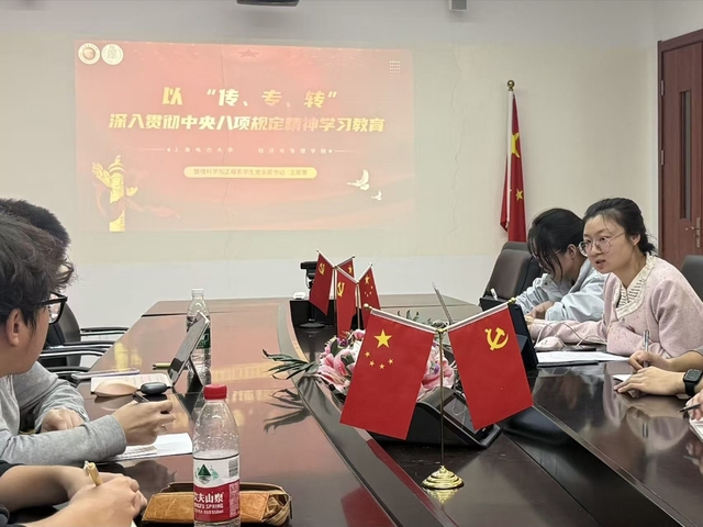 党支部书记王卲萱围绕“‘传、专、转’中央八项规定精神”,系统梳理全面从严治党十年成效,强调发展对象须以规矩意识筑牢思想防线,从小事践行党的先进性和纯洁性。党支部书记高欣月则以习近平总书记和黄文秀的真实案例为切入点,细致解读“自找苦吃”的攻坚内核,引发同学们深思。
