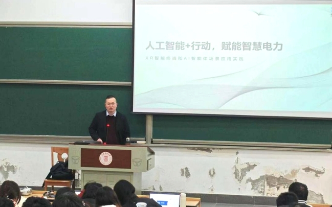 课程伊始,张力以国务院印发的《关于深入实施“人工智能+”行动的意见》为切入点,逐步延伸至XR技术的行业发展脉络与落地实践案例,并深入拆解XR与AI技术的融合逻辑及AI行业的前沿技术方向。他通过层层递进的讲解剖析技术内核,并提出“XR为智能终端,AI为数智大脑,双脑协同”的创新理念,系统阐释了二者如何协同发力,为中国智慧电力行业的高质量发展注入技术动能。