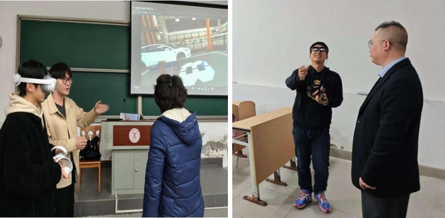 课堂上,学生们全程专注聆听。在互动环节,大家围绕“AR设备在极端环境下的稳定性”“电力大模型与 XR 技术的融合路径”等专业问题,与专家展开深入探讨,充分展现出扎实的学科素养与强烈的创新热情。课后,不少同学仍积极请教技术落地的具体细节,并亲身体验了智能化的终端XR眼镜。