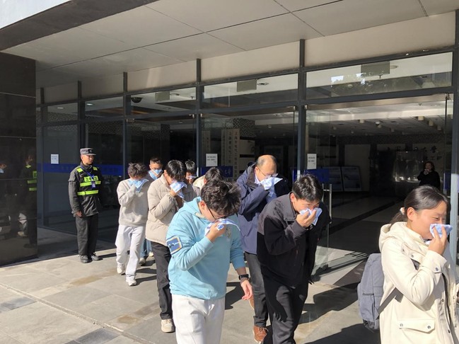 中午12时30分,演习正式开始。随着急促的消防警报声在致远楼内响起,楼内师生迅速进入应急状态。在各楼层疏散引导员的指挥下,师生们严格按照消防逃生规范,用提前准备好的湿毛巾捂住口鼻,压低身体,沿着预定疏散路线快速、有序地从各个安全出口撤离大楼,前往指定安全区域集合。整个疏散过程紧张而不慌乱,用时短、效率高,达到了预期效果。