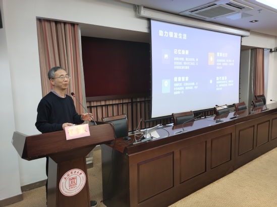 论坛上半场,原电子与信息工程学院副教授贺雪晨以“拥抱AI时代,陪伴退休生活”为题,结合自身专业背景,以通俗易懂的语言,介绍了人工智能(AI)技术的最新发展及其在日常生活中日益广泛的应用。他着重为老同志们分享了认识、学习并巧妙运用AI工具的路径,从提升生活便利度的图像编辑、智慧出行,到关注身心健康的健康监测,鼓励老同志主动学习,用科技的智慧点亮退休时光。