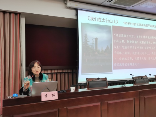 下半场,原经济与管理学院李丽副教授,作为八路军129师769团的后代,以“铭记历史,传承家风,弘扬抗战精神”为题,带来了一场感人至深的分享。她深情追溯,将我们带回父辈们投身百团大战和抗美援朝上甘岭战役的烽火岁月,用真实的影像和鲜活的语言,引领老教授们重温那段荡气回肠、可歌可泣的抗战历史。更令人动容的是,李丽副教授还分享了暑期参与由八路军129师769团后代发起、“中野虎师”官兵共同参与,在太行山组织的“追寻父辈足迹,重走抗战烽火路”纪念行动,让抗战精神在血脉中薪火相传。
