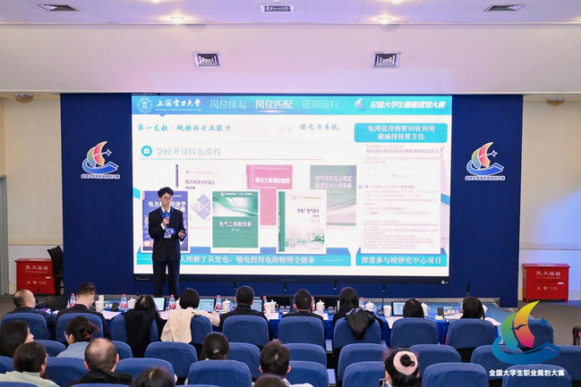 我校选手杨泽元以“碳索不息,电亮未来”为主题,阐述自己立志成为一名让“用上电变为用好电”的电力交易员的职业梦想。他充分展现了上电学子务实致用、明理致远的风貌风采,并用行动助力新型电力体制改革。