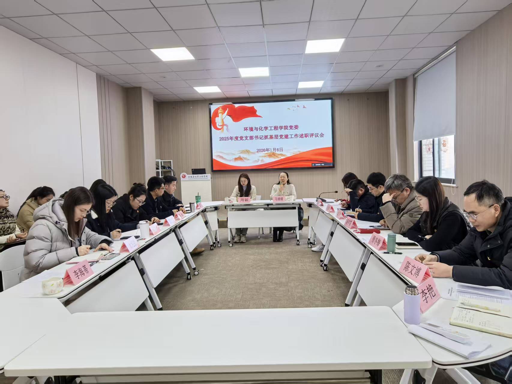 为深入学习贯彻习近平新时代中国特色社会主义思想,全面落实新时代党的建设总要求,切实提升基层党建工作质量,1月6日,环境与化学工程学院党委在临港校区环化楼A213会议室召开2025年度党支部书记抓基层党建工作述职评议会。校党委组织部副部长(党委组织员)马姗姗、环化学院党政班子、党委委员、各党支部书记、组织员、党员代表参加会议,经济与管理学院组织员周颖列席会议,会议由学院党委书记常华主持。