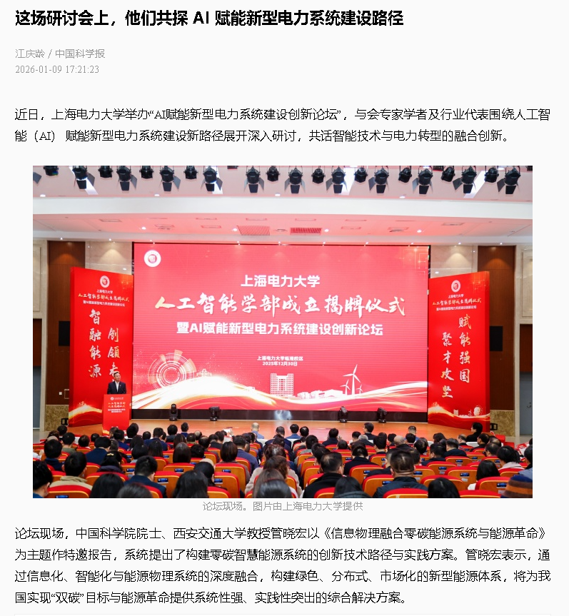 【中国科学报】这场研讨会上,他们共探AI赋能新型电力系统建设路径