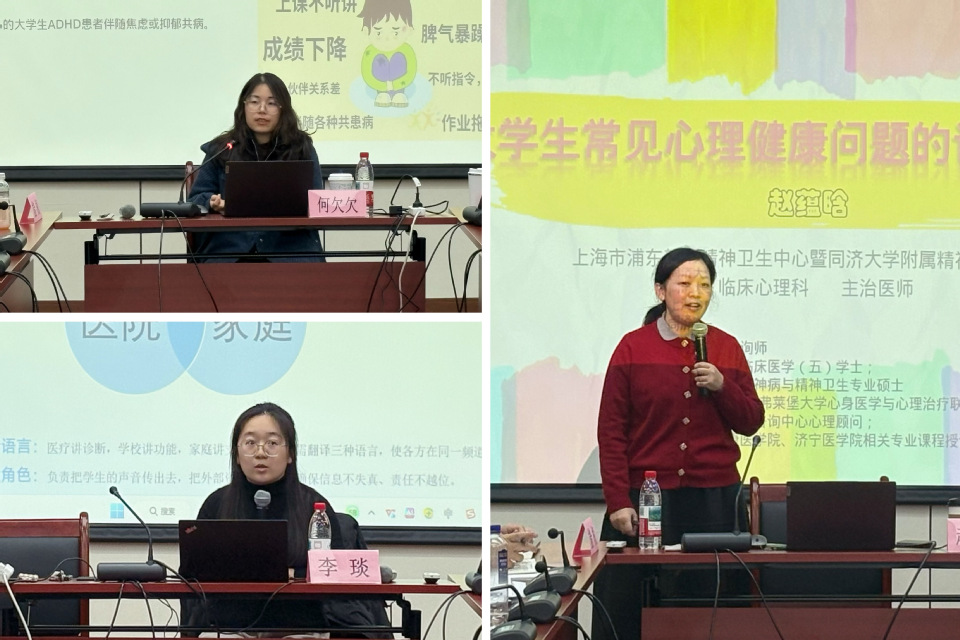 陈发展围绕“大学生心理危机干预及体系建设”展开系统讲解,深入剖析心理危机的评估方法、表现特征与识别技巧,梳理大学生心理危机的干预框架,并重点解析校园心理危机干预网络的建设。何欠欠、赵蕴晗、李琰分别围绕“大学生常见精神障碍的识别与应对”“大学生常见心理健康问题的识别与应对”以及“医校家协同机制在大学生心理健康工作中的实践”等专题进行细致讲解与分享。培训内容立足实际、注重实效,既有对危机干预的深度剖析,也有对日常心理问题的全面关注,更从协同机制层面构建了工作闭环,为高校心理健康教育工作的深入开展提供了兼具理论高度与实践操作性的重要参考。
