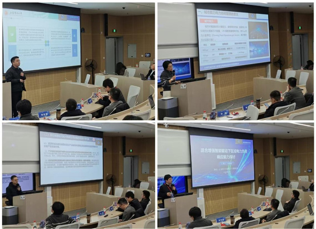 在学术报告环节,多位专家学者围绕能源系统智能化、电网规划与负荷响应、绿色转型政策效应等前沿问题作专题报告。胡伟教授作题为《基于深度学习的综合能源系统多元负荷预测方法研究》的报告,介绍了深度学习方法在综合能源系统负荷预测中的应用思路与技术路径。邹秀清教授作题为《绿色城镇化对减污降碳协同发展的影响机制及门槛效应——以资源型城市为例》的报告,从实证角度系统分析了绿色城镇化对减污降碳协同推进的作用机制。孙波教授围绕《AI时代城市算力发展与电网规划的协同管理探讨》,阐述了算力基础设施与电网规划之间的协同关系及其对新型电力系统建设的影响。杜璞良副教授作题为《混合增强智能驱动下区域电力负荷响应能力探讨》的报告,介绍了智能算法在区域电力负荷响应能力建模与评估中的创新应用。潘仙友副教授以《群体决策驱动下的企业绿色投资效能提升机制》为题,从管理与经济学视角分析了企业绿色投资决策与绩效提升之间的内在机理。