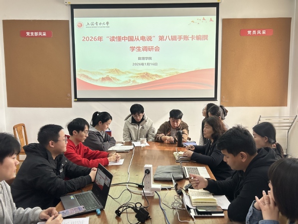 为深入推进我校2026年“读懂中国·从电说起”第八辑手账卡编撰工作,广泛征集学生的意见与建议,数理学院于1月16日在数理楼A302会议室召开编撰调研座谈会。数理学院党委副书记赵月琴,相关辅导员以及本科生、研究生代表参加会议,会议由辅导员王亚霖主持。