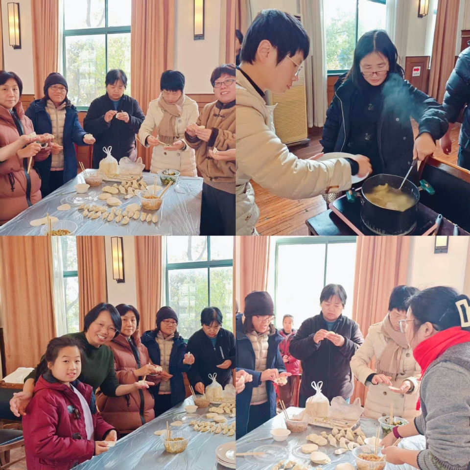 饺香暖冬,共绘新程,教师们围在桌旁,填馅、捏合,动作行云流水,配合默契无间。大家一边熟练地包着象征团圆吉祥的“如意饺”,一边亲切交流,分享学校生活点滴,共话新年美好愿景。热气腾腾的饺子端上桌,香味四溢,大家围坐一堂,在轻松融洽的氛围中共品美味。