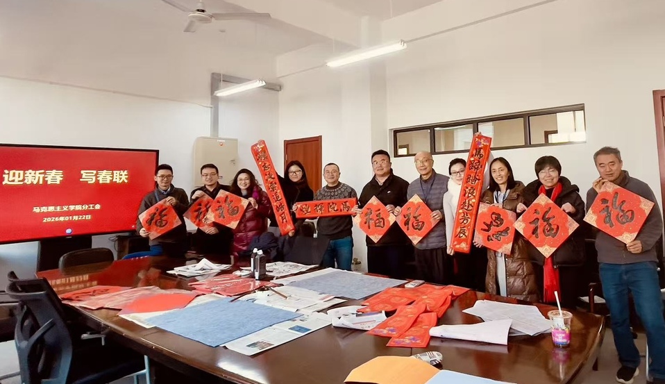 岁末迎春,年味渐浓。为喜迎丙午马年新春佳节,深入弘扬中华优秀传统文化,践行社会主义核心价值观,进一步营造欢乐祥和、凝心聚力、温馨融洽的节日氛围,丰富教职工精神文化生活,马克思主义学院分工会于1月22日精心举办“迎新春·写春联”特色活动,为全院教职工送上新春的美好祝福。