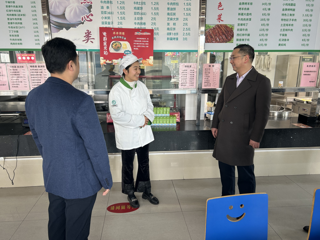 校领导一行先后前往保卫处、警务监控室、学生公寓、食堂等值班岗位,与值班人员亲切交流,详细了解寒假期间校园运行保障、应急值守等工作情况,对大家坚守岗位、履职尽责表示衷心感谢。