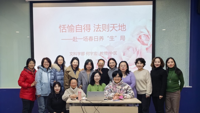 3月5日下午,为庆祝“三八”国际妇女节,关爱女教师身心健康,文科学部在大学生活动中心107室举办了一场别开生面的春日养生专题讲座。本次讲座特邀学部何宇宏教授担任主讲,她以“赴一场春日‘养’生局”为主题,带领女教师们共赴一场温暖身心的春日之约。