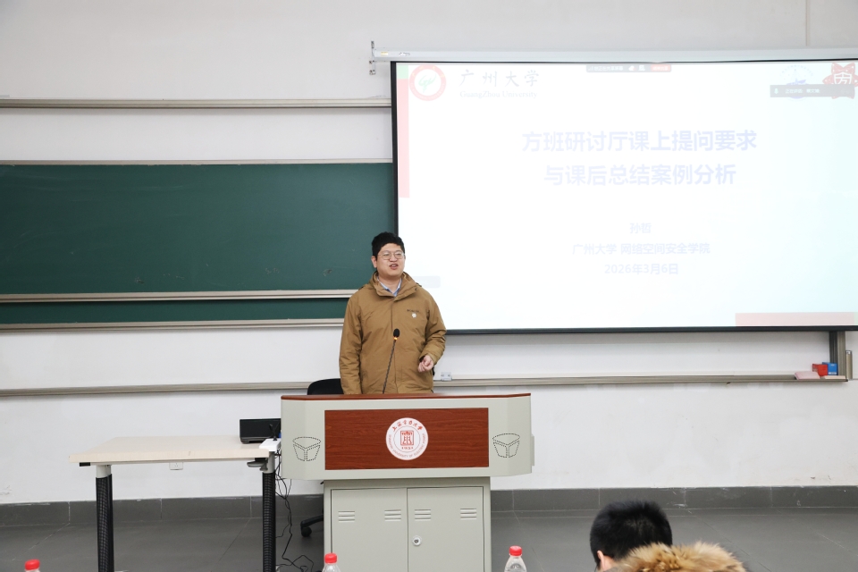 3月6日下午,活动同步举办方班模式专题报告,束建钢教授以《方班研讨厅课程介绍及演讲要求》为题,系统解读了方班研讨厅的课程体系设计、实施规范与核心育人目标;孙哲教授围绕《课上提问和课后总结》,分享了方班翻转课堂教学模式中的互动设计、思维引导与教学闭环构建方法;吴联仁教授以《论文选题及案例分析》为主题,结合丰富的学术案例,讲解了网络安全领域学术研究的选题逻辑、创新路径与核心方法论。专题分享结束后,全体师生围绕方班教学模式落地、学术研究能力提升、学科建设融合等话题展开了充分的互动交流,为教学实践与人才培养工作积累了宝贵经验。