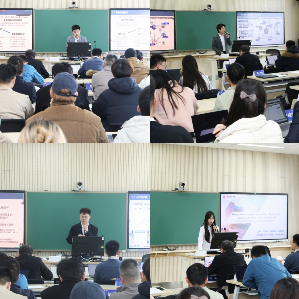 在方班实验班研讨厅示范观摩课学生学术报告环节,方文皓同学以《PBP:针对恶意软件分类器的后训练后门净化》为题,聚焦恶意代码分析与防护领域,分享了针对恶意软件分类器的后门净化技术研究成果。付鑫洋同学带来《FLORA: 异构低秩自适应的联邦微调语言大型模型》报告,深入探讨了人工智能算法领域异构低秩自适应的联邦微调大语言模型优化方案。鲍元吉同学以《ChatKBQA: 基于微调大语言模型的知识图谱问答框架》为主题,展示了大语言模型与知识图谱深度融合的问答框架创新实践。沈怡婷同学则围绕《面向云边缘物联网的具有动态服务的保护隐私的细粒度数据共享》,针对云边物联网场景下的数据隐私保护核心难题,分享了保护隐私的细粒度数据共享技术方案。