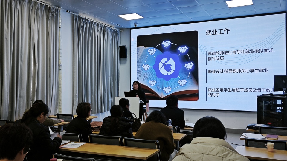 学院党委副书记赵月琴部署学院2026年学生工作,重点布置就业、学风建设、思想政治教育等工作。她号召全院教师形成育人合力,扎实推进就业工作,精准施策助力学生高质量就业。同时要深化学生日常思政教育,强化思想引领与价值塑造,持续推进学院学风建设,营造勤学善思的学习氛围。