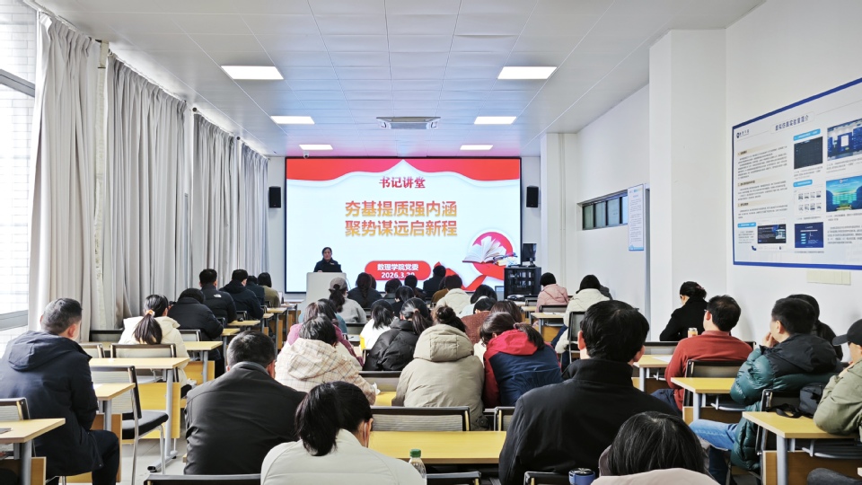 为锚定“十五五”开局之年学院发展目标,统筹推进新学期党建、教学、科研、学生工作等各项重点任务落地见效,3月21日下午,数理学院召开全体教职工大会暨教师政治理论学习之“书记讲堂”。学院班子成员及全体教职工参加会议,会议由学院党委书记周洁明主持。