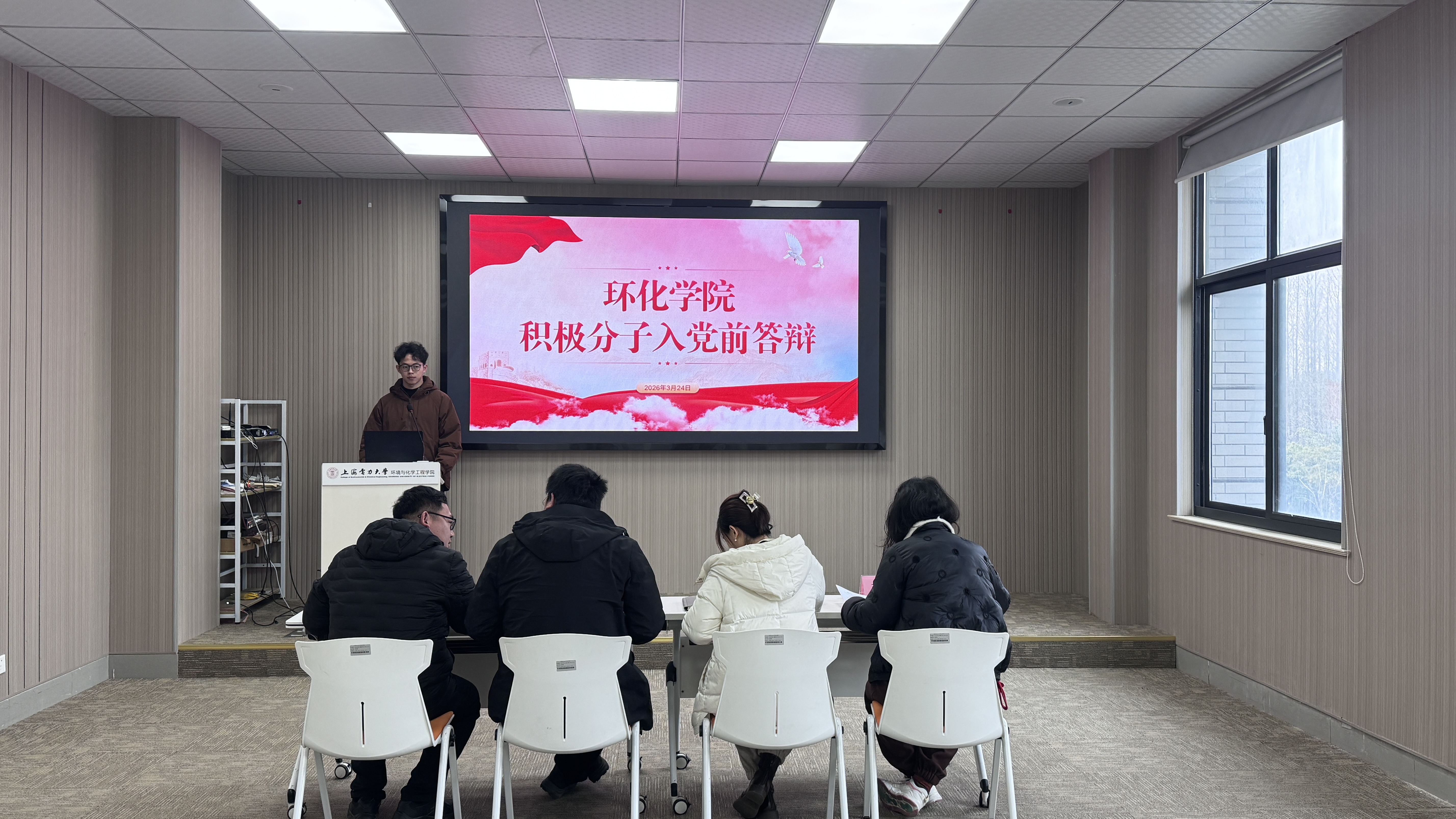 为从严抓实党员发展工作,严把党员入口关,提升党员队伍建设质量,环境与化学工程学院于3月24日组织开展2026年入党积极分子入党前答辩考核。参评人员分为本科生两组、研究生一组,分类分层开展多维度考核,全方位检验入党积极分子的思想觉悟、理论素养与综合表现。