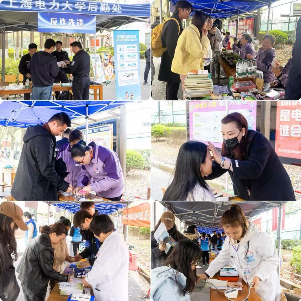 在专项宣讲区,来自沪东派出所的民警为师生带来一场生动的反诈宣讲课,深入讲解当前高发的诈骗手法与防范技巧,并发放宣传资料,有力筑牢校园反诈安全墙。便民服务区则汇聚了多重实惠:从衣物缝补挂烫,到春季护肤咨询;从倡导绿色生活的闲置物品交换,到趣味十足的“绿”动校园环保快闪答题,每一处都彰显着服务贴心与低碳理念。健康生活区尤为受到关注,师生们不仅可以进行血压测量、获得健康指导,还能在专业医务人员的指导下,动手学习心肺复苏、海姆立克急救法等关键急救技能,切实提升自我防护与应急救助能力。内容丰富、形式新颖的市集吸引了大量师生驻足参与、踊跃体验。大家穿梭于各服务点位之间,或聆听宣讲,或体验服务,或动手学习,沉浸式感受着“足不出户”的便利与温暖。许多师生表示,此次活动精准对接了日常生活中的实际需求,内容实在、针对性强,真正做到了把暖心服务送到了大家的心坎上。