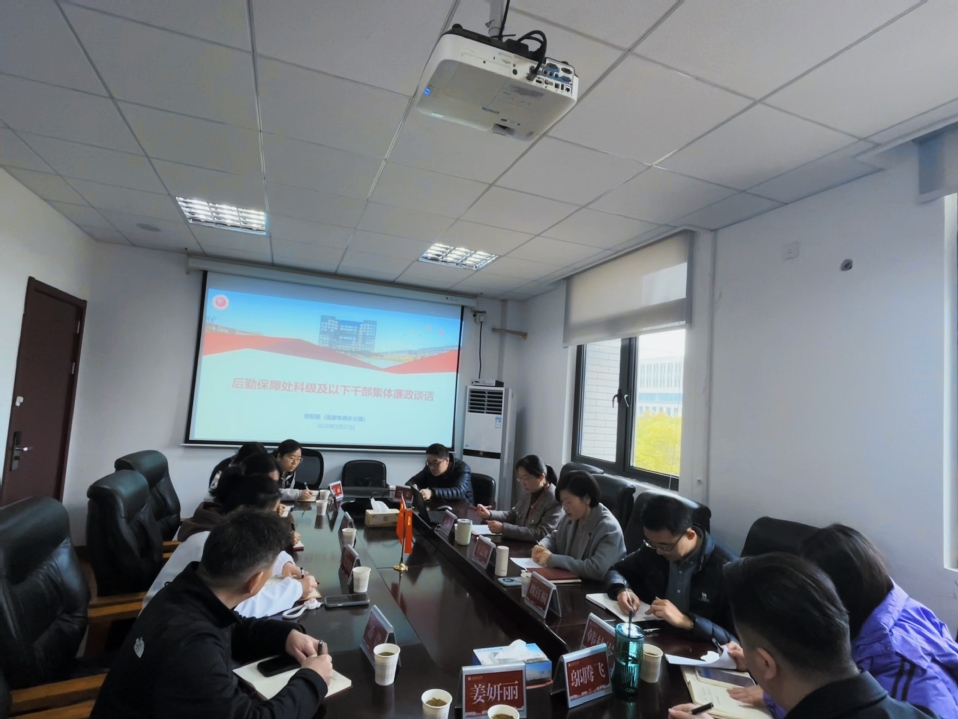 为深入开展树立和践行正确政绩观学习教育,持续强化年轻干部教育管理监督,以严实作风涵养风清气正的政治生态,后勤保障处于3月27日召开科级及以下干部集体廉政谈话。校纪委副书记余静出席并作专题辅导,后勤保障处全体科级及以下干部参加会议。会议由后勤保障处副处长(主持工作)王云欢主持。