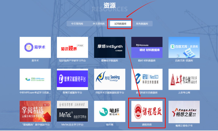 使用方式(图书馆主页/试用数据库/“课程思政”数据库)