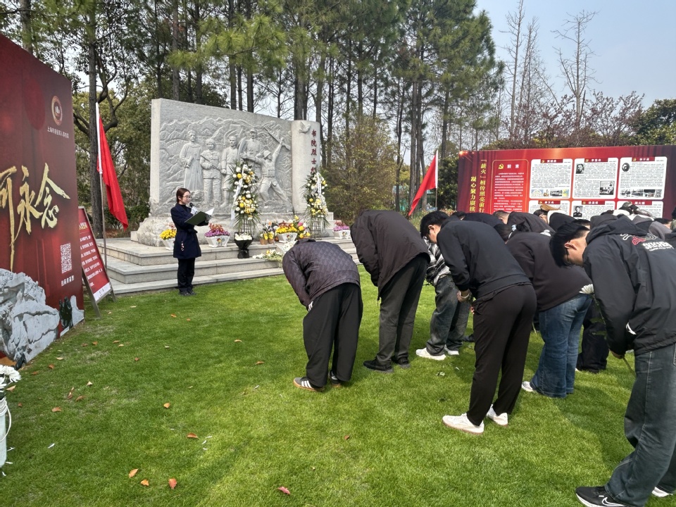 活动现场庄严肃穆,松柏苍翠,寄托着对英烈的无限哀思。在书院烈士纪念碑、“两弹人”纪念园及南汇革命纪念园前,全体成员整齐列队,怀着崇敬之心,向革命先烈敬献鲜花,鞠躬致哀,默哀致敬,以表达对英烈的深切缅怀和崇高敬意。