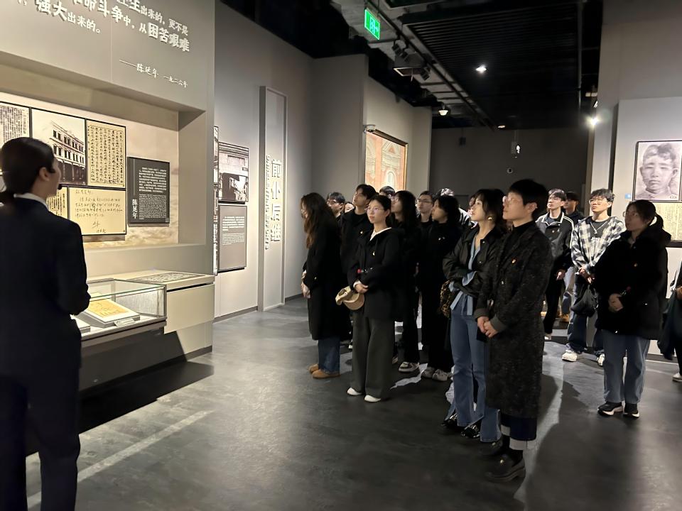 追思仪式结束后,师生们跟随讲解员走进龙华烈士纪念馆,参观了《英雄壮歌——上海英烈纪念展》。在讲解员的引导下,大家依次参观了“信仰的召唤”“使命的执着”“信念的坚守”等展区,认真学习了罗亦农、杨殷、陈延年、赵世炎、彭湃、陈乔年等革命先烈的英雄事迹。珍贵的革命文物、史料图片和影像资料,让师生们深切感受到先烈们为理想信念奋不顾身的崇高精神。在龙华革命烈士纪念地,大家实地参观了曾经关押革命志士的牢房旧址和就义地,感悟革命先辈不屈不挠的斗争意志。