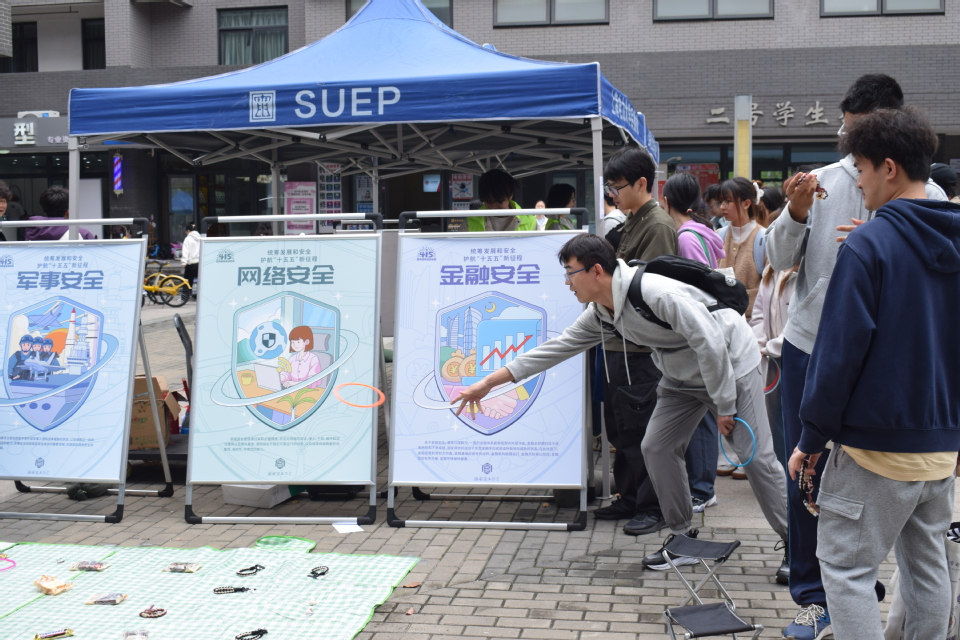 在“4·15全民国家安全教育日”之际,在临港校区一食堂广场上的“国安闯关・青春护航” 趣味游园会人气高涨。活动打破传统宣讲模式,设置5大互动闯关环节,把抽象安全知识转化为沉浸式体验,让同学们在趣味答题、协作挑战中主动学习、深化理解,实现“被动听讲”向“主动探索”转变,在轻松氛围中提升安全素养、强化责任自觉。