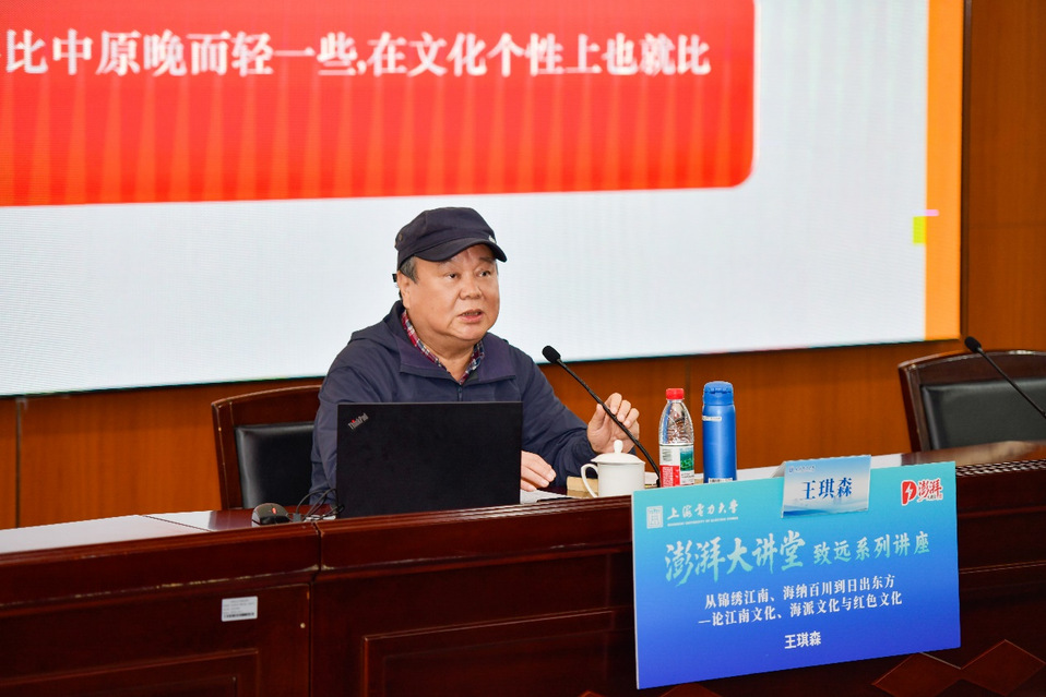 讲座中,王琪森以宏大的历史视野和深厚的学术积淀,系统梳理了江南文化、海派文化与红色文化的生成脉络、核心特征及内在精神。他指出,江南文化以诗性、精致、开放、灵动为底色,为后世海派文化的崛起提供了丰厚的人文土壤;海派文化则是在上海开埠后,融汇中西、兼容并包、创新求变,形成了“海纳百川、追求卓越”的文化内核;红色文化的兴起及发展和江南文化的开明性、包容性,以及海派文化的开放性、引领性是分不开的。红色文化所蕴含的革命精神与历史价值,是从“锦绣江南”到“海纳百川”再到“日出东方”的伟大精神升华。