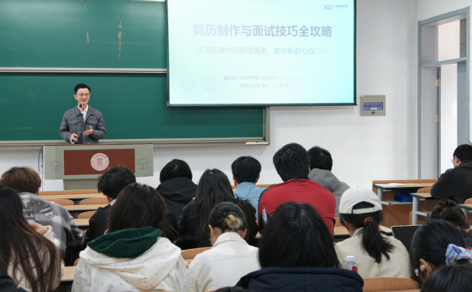 为进一步提升学生求职竞争力,帮助学生更好掌握简历制作与面试应对技巧,4月21日,文科学部“职”达未来·星途讲堂第二期在临港校区一教105举行,特邀嘉驰国际陈健担任主讲嘉宾。