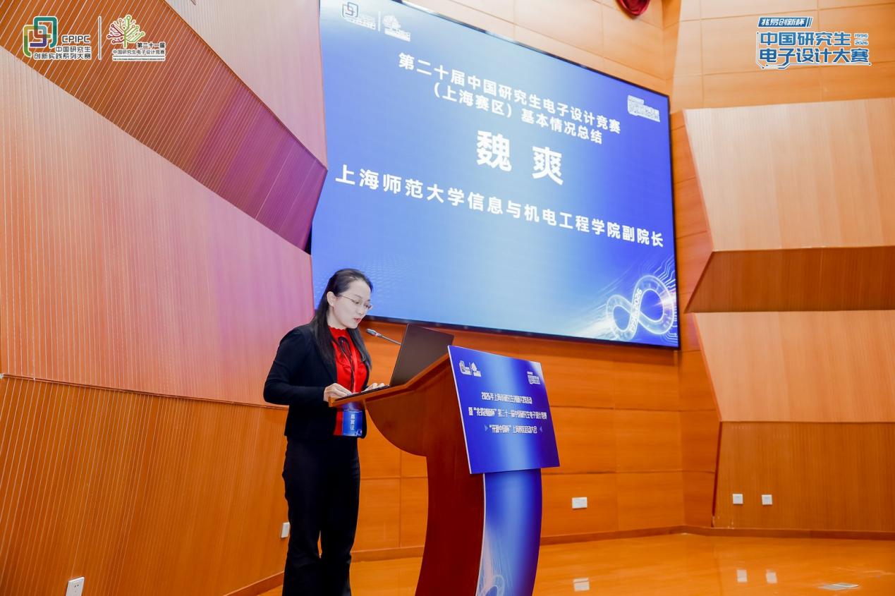 会上,上海师范大学信息与机电工程学院副院长魏爽对第二十届研电赛上海赛区承办工作进行总结。她指出,今年参赛研究生总体规模突破千余人次,既生动展现了上海创新实践型研究生培养的显著成效,也彰显了上海研究生扎实的专业基础、突出的创新能力和优良的实践素养,赛事品牌影响力持续提升。