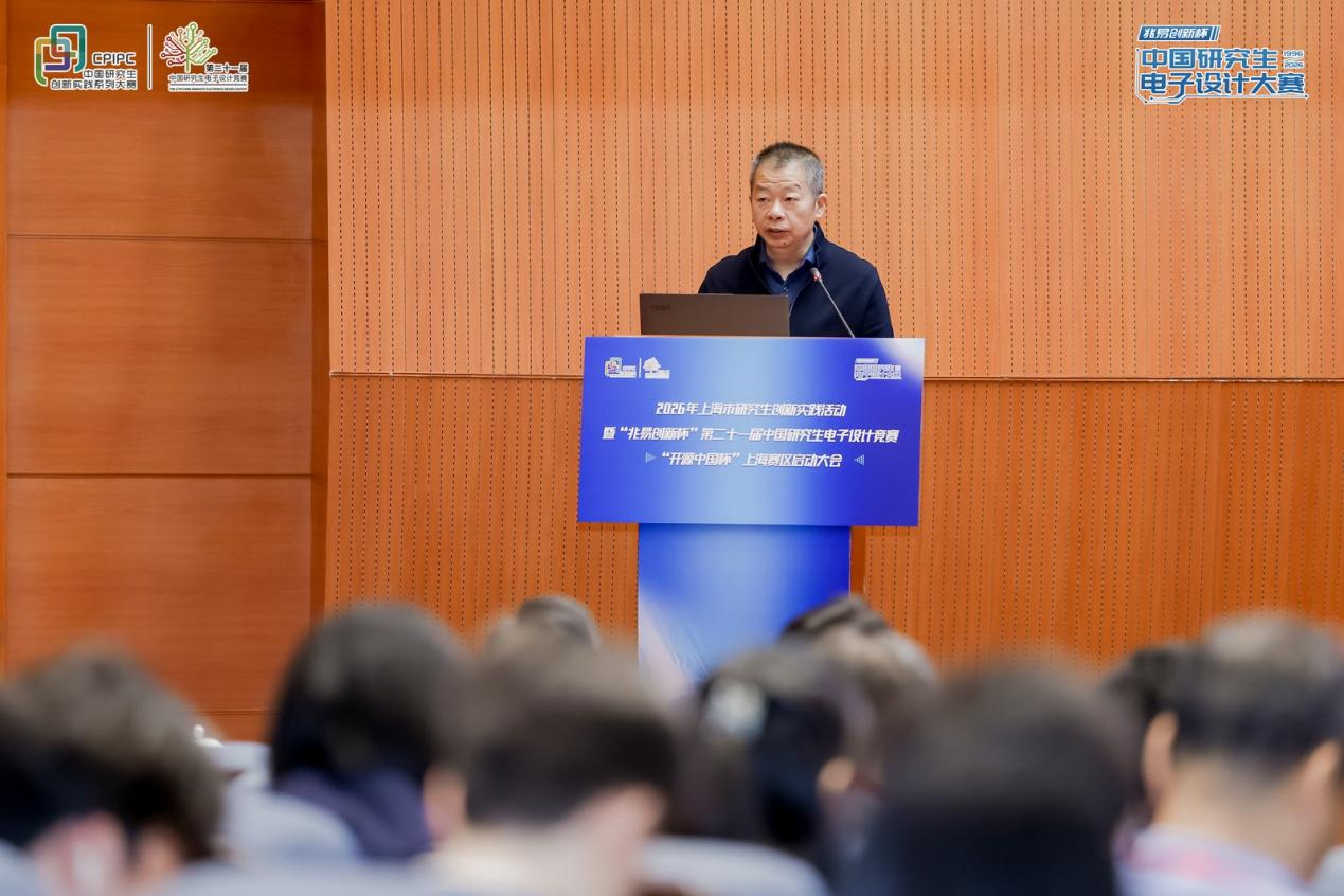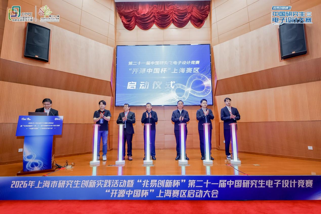 在与会嘉宾和师生代表的共同见证下,中国电子学会、上海市学生事务中心、上海市电子学会、上海电力大学、开源中国、零界魔方等单位代表共同启动2026年中国研究生创新实践系列大赛上海赛区暨第二十一届中国研究生电子设计竞赛上海赛区赛事,标志着2026年上海市研究生创新实践系列赛事正式拉开帷幕。