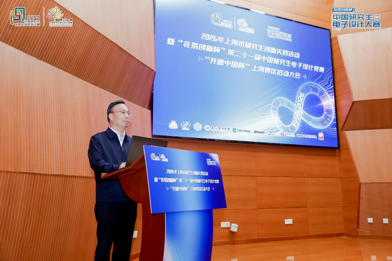 4月26日上午,2026年中国研究生创新实践系列大赛上海市启动大会暨“兆易创新杯”第二十一届中国研究生电子设计竞赛“开源中国杯”上海赛区开幕式在我校举行。大会由上海市学位委员会办公室、上海市学生事务中心主办,上海市电子学会、上海电力大学承办,开源中国战略合作支持。