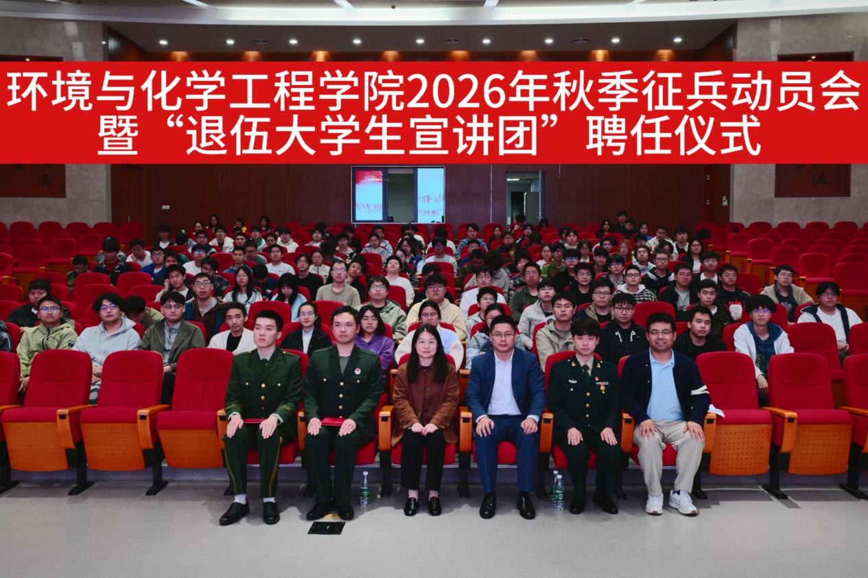 为贯彻落实2026年秋季征兵工作的决策部署,进一步凝聚青年参军报国的思想共识,激发新时代青年的报国担当,帮助学生全面了解应征入伍相关政策,引导大家积极响应国家号召、投身军营、报效祖国,4月24日下午,环境与化学工程学院在临港校区学术楼117报告厅召开2026年秋季征兵工作动员会暨“退伍大学生宣讲团”聘任仪式。学院党委副书记周冬梅、校武装部军事科(军事教研室)负责人薛正豪出席会议,学院学生代表参会。会议由学院征兵工作联络员王涛主持。