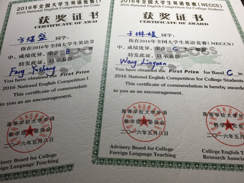 本次比赛前,外国语学院竞赛团队张雯、孙怀香等老师全面负责了参赛的组织、协调等工作,面向全校为不同层次的参赛选手举办专题辅导讲座,为学生答疑指导、积极备赛,为本次比赛取得优异成绩打下了坚实的基础。在参加初赛的同学中,李光宏、鲍新雨、林斯韵、荣帅昂、周雪莹、陶佳锦、张颖梅、秦佳鸣、杨帆、孙圣分获三个组别的二等奖,李家骐、吕珊、龚胜、秦露露、汤华、刘晶晶、乔静、田书锦、张宓璐、唐春童、陈康妮、赖雨盟、何天旭、蒋倩、葛伊颖、张伊扬、顾琪珺、刘馨儿、朱璟瀚分获三个组别的三等奖。参赛学生通过本次比赛的历练,大幅提升了自身的英语应用能力及水平。