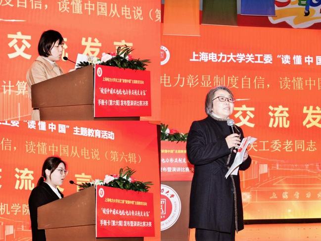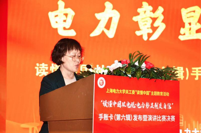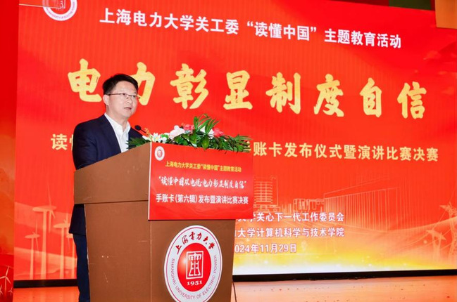 11月29日下午,由校关工委主办、计算机科学与技术学院承办的“读懂中国从电说·电力彰显制度自信”手账卡(第六辑)发布暨演讲比赛决赛在临港校区大学生活动中心演艺厅举办。市教卫工作党委二级巡视员、老干部处处长、市教育关工委秘书长金勤明,校党委副书记、副校长朱克勇,校关工委常务副主任石奇光,上海电力绿色能源有限公司副总经理沈海鸥,以及相关职能部门领导、校关工委骨干老同志、青年教师和学生代表三百余人参加,活动由校关工委办公室主任刘洁荣主持。