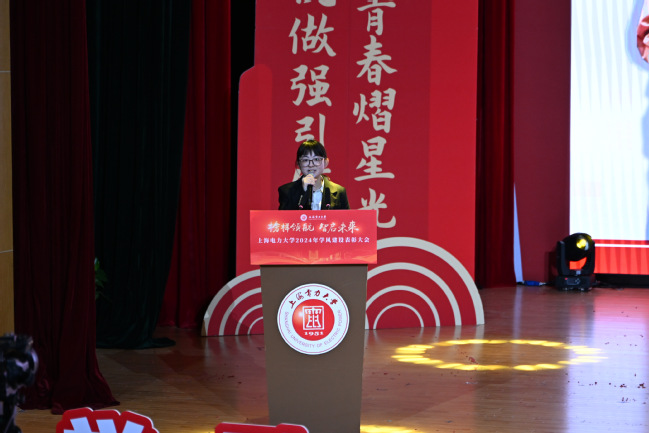 本次大会分为三个篇章。“明志篇·铸魂领航”中,上海高校辅导员主题班会展示活动二等奖获得者、数理学院辅导员杨雪艺带来主题班会展演《以奋斗之我“电”亮中国式现代化》,引领青年学生将青春梦与中国梦同频共振,绽放奋斗光芒。