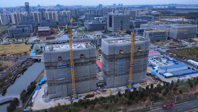 临港校区三期工程学生公寓项目自2024年1月开工以来,建设团队以学校六新发展理念为根本指导,以打造优秀干部队伍、建设优质工程为目标,结合现场实际制定施工计划,有效应对高温、台风、强降雨等恶劣天气环境,在质量、环境、安全管理上获得多方肯定,历时11个月的建设,项目正式主体结构全面封顶,呈现崭新面貌。