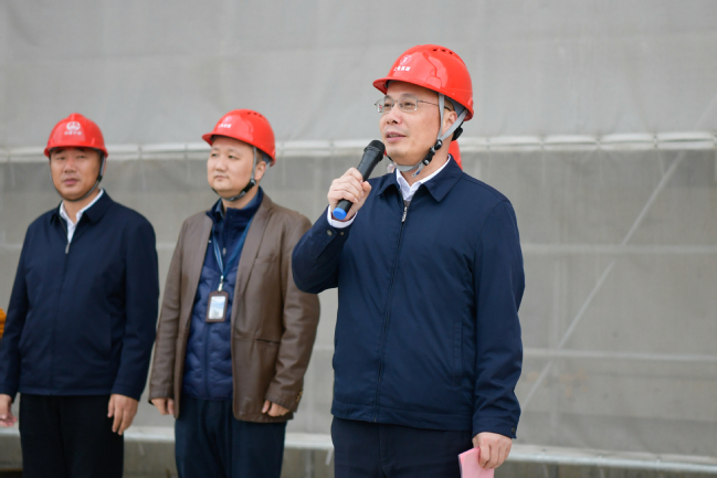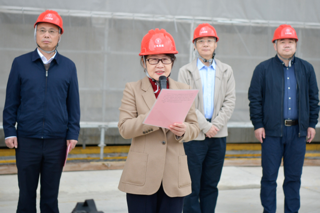 仰颐对项目全体参建人员致以亲切问候。她表示,临港校区三期工程是对接国家“双碳”战略、上海市产教融合战略、临港新片区创新发展规划的重要项目,是对接学校新型电力系统教育转型改革,打造综合能源示范学科群平台及产学研应用集群的示范项目项目;学生公寓项目将为学生打造一个宽敞明亮、设施完善、舒适宜居、社区功能丰富的居住环境。其主体工程顺利实现结构封顶,标志着学校“十四五”规划目标正在逐一实现,标志着学校教学资源空间得到了进一步充实。她希望建设团队再接再厉,确保工程建设质量、确保工程建设进度、确保工程建设安全,继续按照“工程优质、干部优秀”的双优标准,推进施工并按期竣工投入使用。
