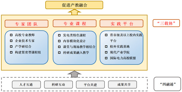 以专家团队、专业课程和实践平台“三载体”,实现人才互通、科研互动、平台共建和成果共享“四融通”,打造双师型教师队伍。通过与五大发电集团、上海电气集团、申能集团和浙能集团等下属企业建立产学研合作基地、产教融合教学团队,形成的教育教学体系和教材,不仅满足本校学生的培养需求,每年还为近千名的电力行业相关企业员工的本科学历和职业培训提供支持。