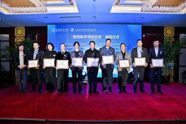 宁波东方电缆股份有限公司、上海道杰公益基金会代表领取“教育贡献奖”奖牌。