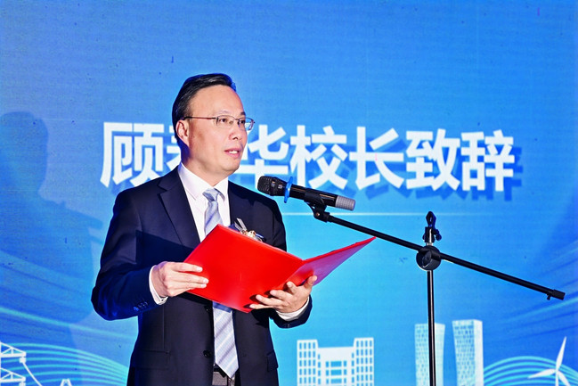 顾春华代表学校向出席本次感恩盛典暨发展大会的嘉宾、企业,以及长期以来关心关注学校发展的校友和社会各界爱心人士表示热烈的欢迎与衷心的感谢。他表示,学校教育事业的发展离不开能源电力行业战略合作单位的携手合作,离不开校友和捐赠企业的支持相助,这些企业和爱心人士以实际行动诠释对社会和教育事业的责任与担当,助力学校高质量发展,增强学校的综合实力和竞争力,赢得广泛社会赞誉。他在致辞中介绍学校现阶段发展取得的成绩并展望未来。他指出,学校将在“六新”发展理念引领下,通过进一步加强与校友、企业和社会各界的联系与合作,共同构建更加紧密的合作发展共同体,向全面建设高水平大学建设的新征程奋勇前进。