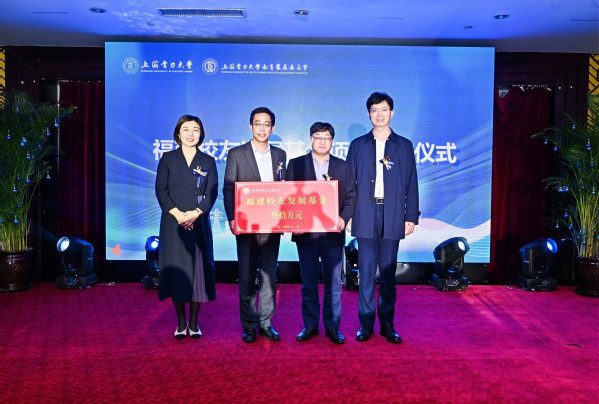 随后进行福建校友发展基金设立仪式。上海电力大学教育发展基金会理事长李兆鹏和秘书长丛亮现场接受捐赠,福建校友工作委员会会长、91级校友邱进煊和秘书长、94级校友唐霁为该项目注入了启动资金三十万元。