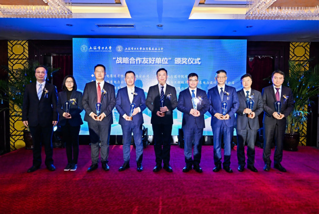 中国华电集团有限公司上海分公司党委书记顾金芳、国网上海市电力公司副总经理王振伟、中国华能集团有限公司华东分公司副总经理陆黎敏、上海电力股份有限公司副总经理潘龙兴、上海电力设计院有限公司总经理王宇卫、中国电力工程顾问集团华东电力设计院有限公司副总经理周丹羽、申能股份有限公司组织人事部副主任凌霄、中国农业银行股份有限公司上海五角场支行党委书记兼行长李慧俊作为战略合作单位代表上台领取了“战略合作友好单位”奖杯。