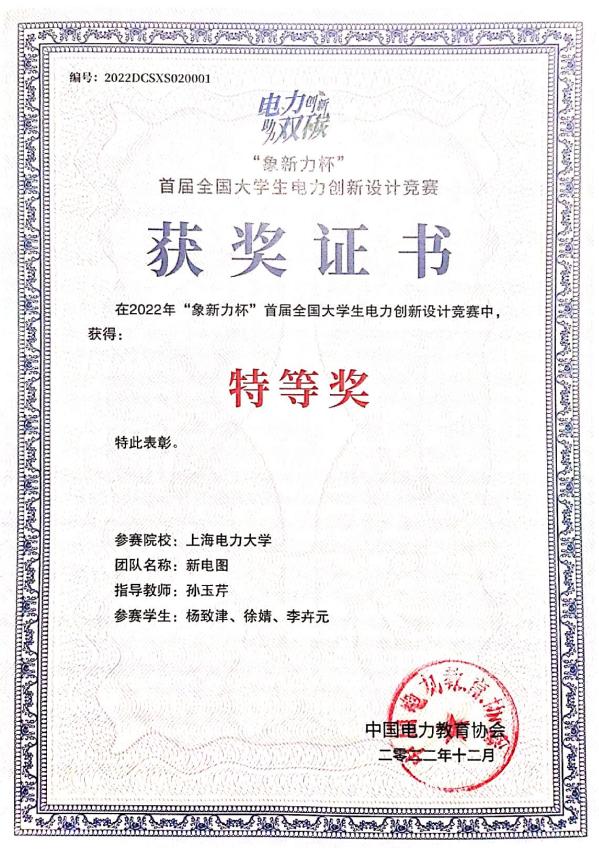 学生在首届大学生电力创新设计竞赛中获特等奖